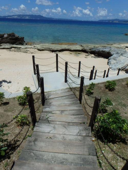 目の前のダイヤモンドビーチは、遊泳には適しませんが、海の近くまで砂浜を歩いていくことはできます。サンゴの破片が多くジャリジャリとした砂浜なので、足を怪我しないよう、履物には注意されたほうがよいと思います。