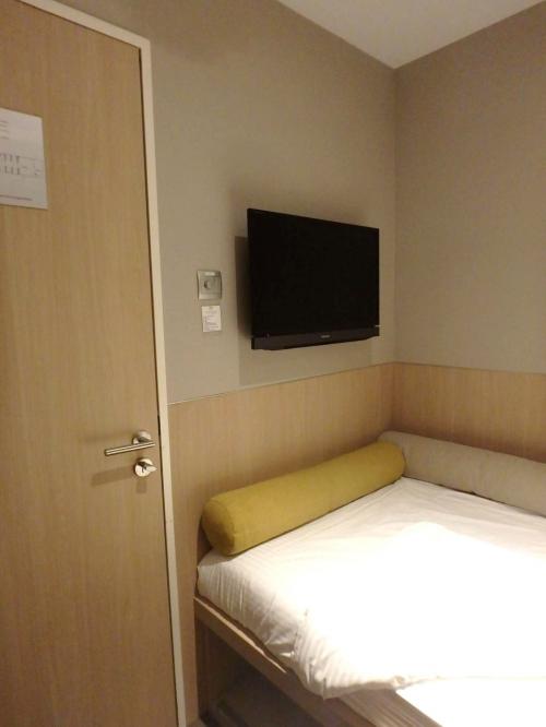 ラウンジの他、個室のNAP ROOMがあり、各部屋にベッド、テレビ、小さなデスクなどがあります。広くはないお部屋ですが、一人で数時間仮眠するだけなら十分ですし、完全にプライバシーが保たれるので安心です。とても清潔で居心地が良く、外の雑音も気にならず静かです。ベッドもホテル並みにとても寝心地良く、ぐっすりと眠れました。