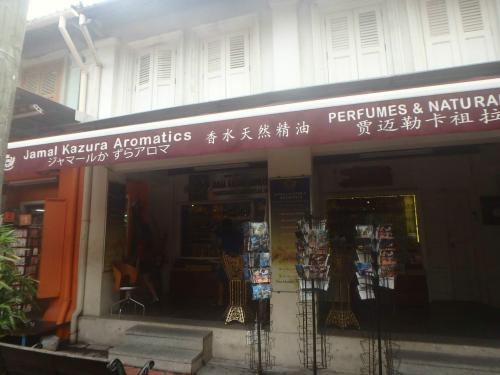 アラブストリートのスルタンモスクから伸びる通りの左側にあります。シンガポールで1930年代から続く老舗の香水店で、アルコールや水を一切使わない、天然オイルだけの香水だそうです。
