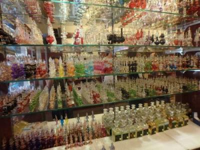 店内へ入ると、エキゾチックないろんな香りでむせ返りそうになりますが、所狭しと並べられた繊細な造りの香水瓶たちはものすごく綺麗!!すべてがエジプト職人の手作りによるものなので、同じ形のものは2つとないそうです。
