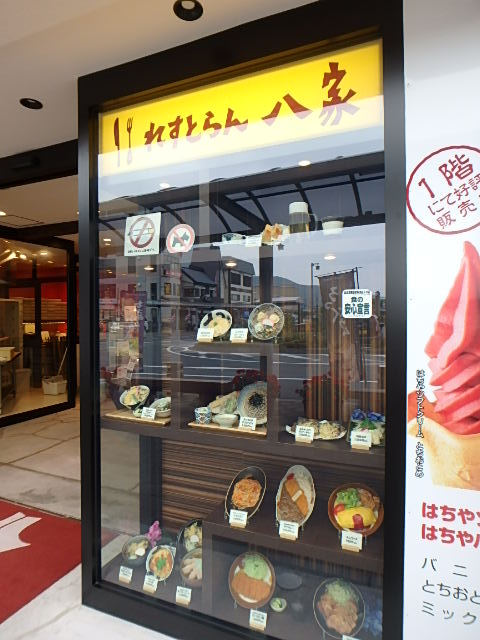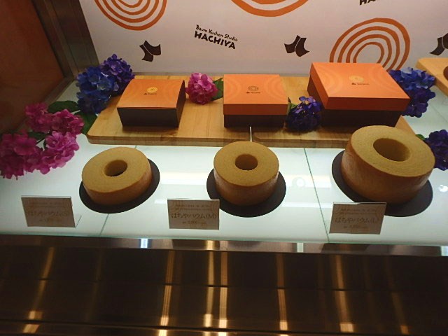 バウムクーヘンで有名な地元のお店ということですが、店頭で長い棒状に巻かれたものがディスプレイされているのがつい気になって入ってみました。バウムクーヘンは、いわゆる普通のバウムクーヘン「はちやバウム」の他、「ろっくバウム」や、いちご味のものなどがありました。私はろっくバウムをお土産に1つ買ってみましたが、細長いのほんの1切れで750円と、かなりいいお値段でした。気になるお味ですが、店頭で試食したときは結構おいしいと感じたのに、家に帰って食べてみると、それほどでも・・・?やっぱり旅先で食べると美味しく感じてしまうのでしょうか。もちろん味覚は人それぞれですので、あくまでこれは私個人の感想です。お店の2階にはレストランもあったので、気になる方はぜひどうぞ♪