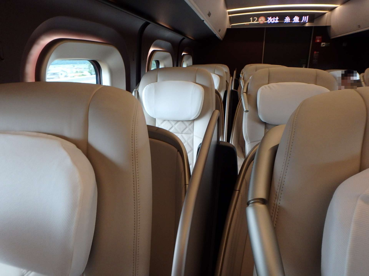 黒部宇奈月温泉から東京まで、母との旅行の帰りに初めて乗りました。グランクラス車両に一歩踏み入れたときから、雰囲気が全然違う!静かな静かな、高級ホテルのロビーにいるみたいで、最初はどぎまぎして、母と二人で、会話してもいけないんじゃないかと思うくらい、すっごく緊張しました(^_^; 。