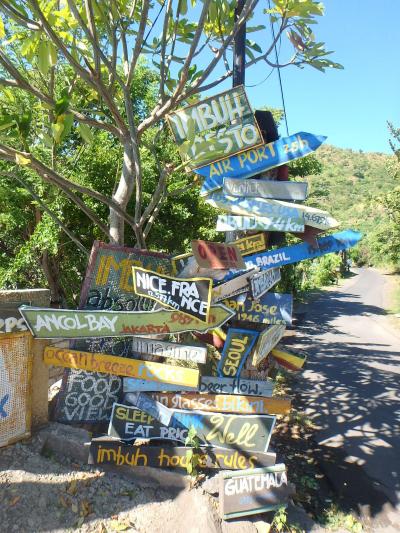 お店の前には、世界の各都市の方角と距離を示した標識がいっぱい付いたオブジェがあって、すぐに目を引きます。アメッドの奥地にあってとにかく個性的なお店ですが、センスはとっても良く、じつにオシャレです。