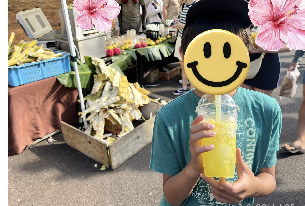 ダイヤモンドヘッド麓の、コミニティカレッジの駐車場で土曜日に開催されています。ダイヤモンドヘッド登山の後に徒歩で行きました。屋台でフォーやガーリックシュリンプ、サトウキビのジュースを買って食べました。人が多くて並んで買わないといけないですが