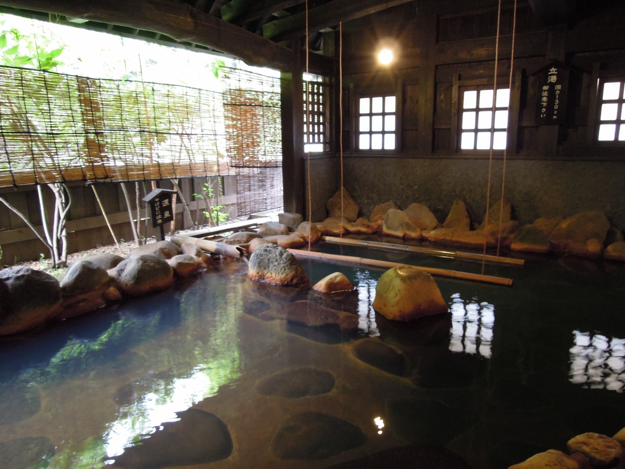 灰色っぽい。割合熱め。かなり大きな内湯と露天風呂。3時間位でお湯が入れ変わるそうですが、風呂の中をあるくと、髪の毛が体につくため、早々に退室。