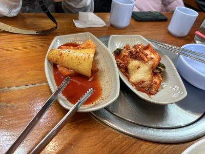 早速夜ごはんー、楽しみ!最初に~、韓国ならではのキムチをいっただっきま...