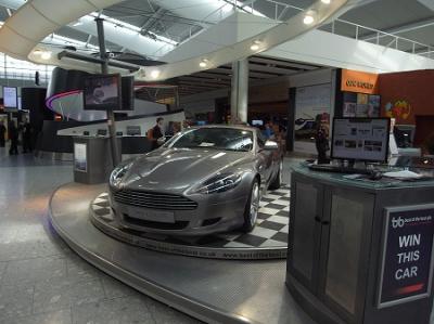 ターミナルには、イギリスのスーパーカーことアストンマーチンも飾られてい...