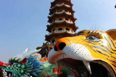 観光ガイドには必ず掲載されていますが、高雄に行ったらまあ一度は行くべきでしょう。市街の北部、台鉄左営駅がいちばん近く、歩いて10分です。MRT生態園區駅からは15分ほどです。龍虎塔は入場無料で、入り口に賽銭箱が置いてあります。らせん階段で上まで登ることができ、池の眺めは最高です。その他、付近には廟もいくつかあり、土産物屋もあります。