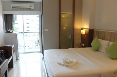 セントラルロードとセカンドロードが交差する街の中心にあります。ビーチロードまでは歩いて5,6分。ホテルの前にバイクタクシーが待機しており、ソンテウもすぐ拾えるので移動には困りません。部屋はまだ新しく清潔で、1人では十分な広さです。バルコニーもあり、そこで喫煙可能です。WIFIが不安定だったのが唯一の欠点ですが、それを差し引いても1泊3000円ちょっとで泊まれるのでコスパは最強だと思います。