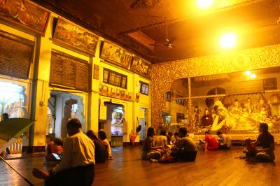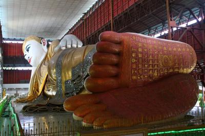 ヤンゴンのダウンタウンから北へ約5km、シュエタゴンパゴダの東約2kmに位置しています。最初ダウンタウンから歩いて行こうとしたのすが、途中で道に迷ってしまいました。最初からタクシーで行くのが無難です。建物はお寺というより大きな体育館という感じで、イマイチ有難味が感じられませんが、それは鎮座している寝釈迦仏があまりにも巨大なので致し方ないかもしれません。仏さんはタイのような金色ではなく、どこかとぼけたような感じです。入場料はタダで、人も少なくゆっくり見れるので、シュエタゴンパゴダとセットでおすすめです。