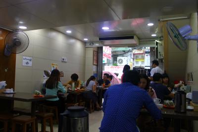 ストリートにあります。有名店といっても食堂といった雰囲気で、気軽に入れます。店の奥にたくさんの種類のメインディッシュが並んでおリ、指さしで簡単に注文できます。サラダや野菜炒めなどはメニューがあってそこまら注文することもできます。魚のヒンを注文しましたが、コクがあって辛くも無く旨かったです。しかし、底に油がたまっており、量はほどほどにするのがいいようです。- 旅行時期