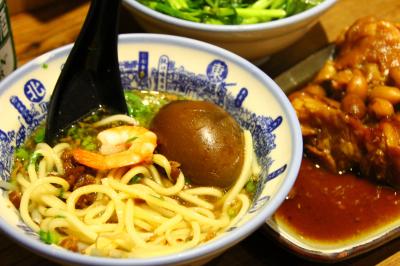 担仔麺であまりにも有名ですが、有名なだけはあります。13時半に行ったのですが満席で10分ほど待ちました。店先に日本語をしゃべれる係員のおねえさんがいてオーダーをきかれます。日本語メニューあります。店に入ると店員全員が日本語でいらっしゃいませと迎えてくれます。店内は冷房が効いており、内装もちょっとレトロでいい雰囲気です。1人用にカウンター席あります。担仔麺は小ぶりですがわずか60元。その他も多くのメニューがありますがどれもリーズナブルな値段でした。青菜おひたしと豚足煮込みをたのんだのですがいずれもおいしく、昼でも夜でもおすすめです。