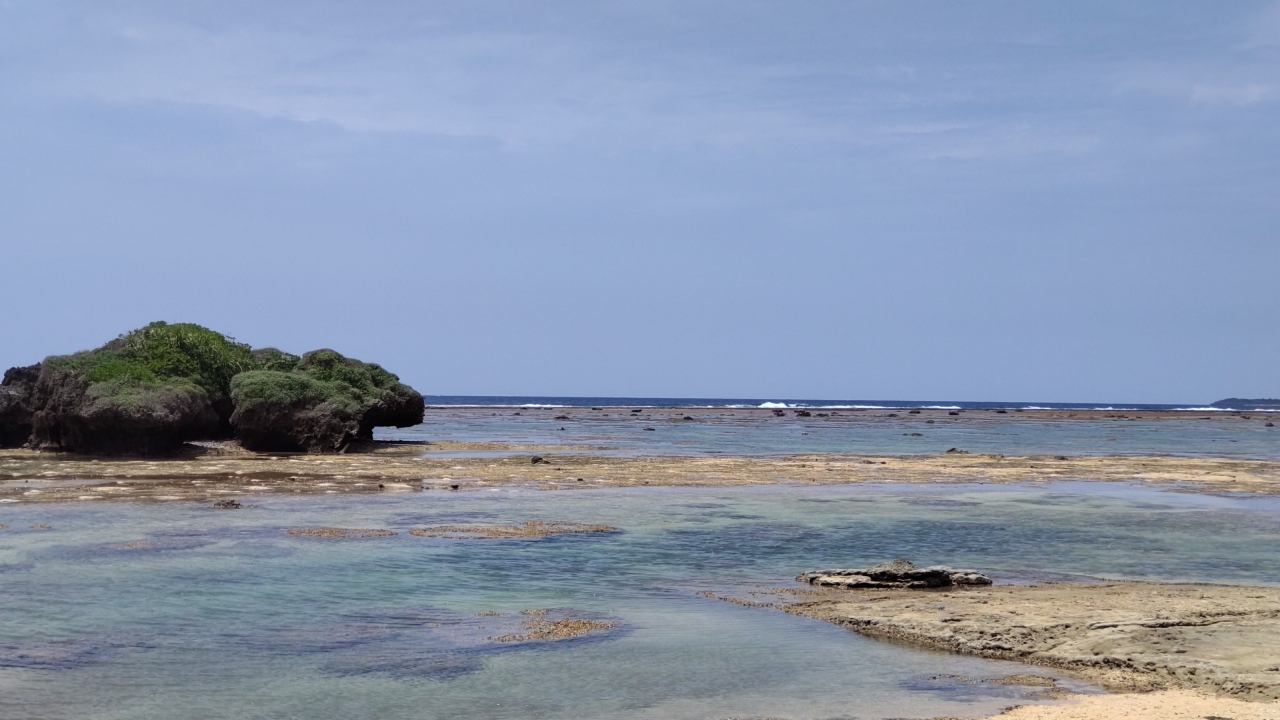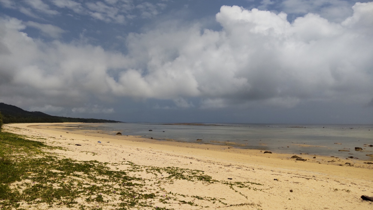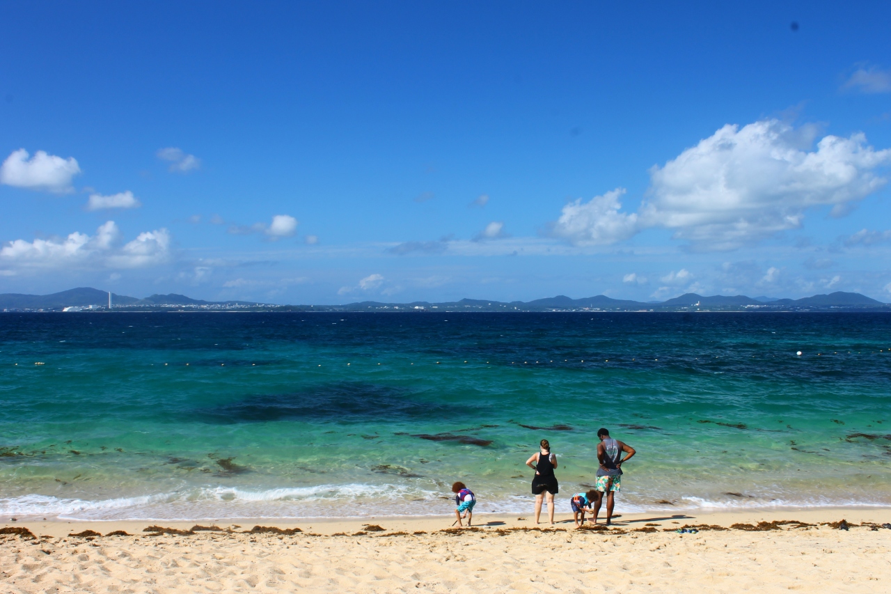 伊計島の真ん中あたりにあるビーチです。途中から案内看板があるので迷うことはありません。このビーチは業者が管理していて、入るには500円を徴収されます。とはいえ、駐車場、更衣室、シャワー、食事ができ、砂浜にはイスとテーブルも設置されてあるので、まあいいかなという感じです。波があったので泳ぐのは断念しましたが、水質は申し分なく、景色もいいです。