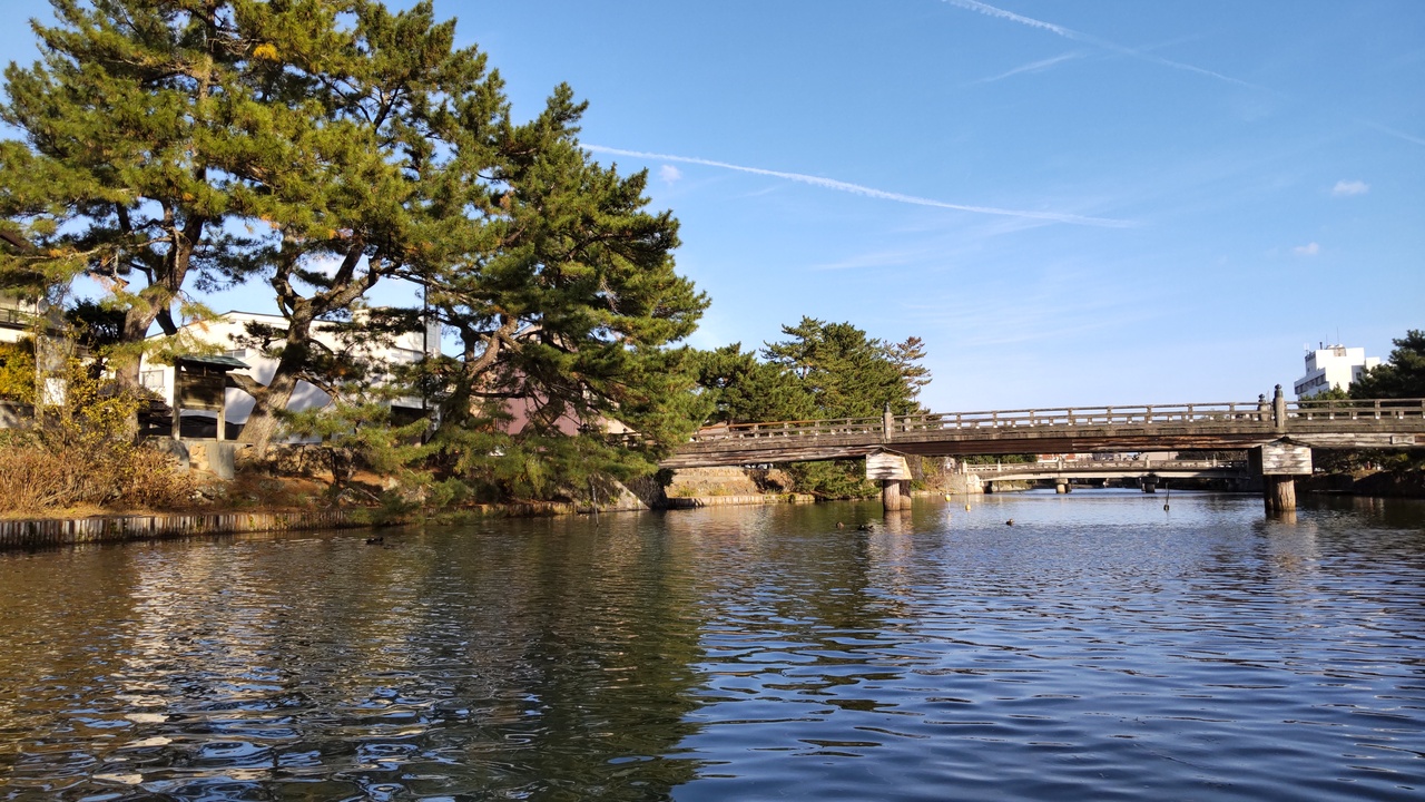 途中、松江城を眺めることができ、低い橋の下をくぐる時は屋根の幌が下がるため、人間も屈まなければなりません。そこがまた面白い。