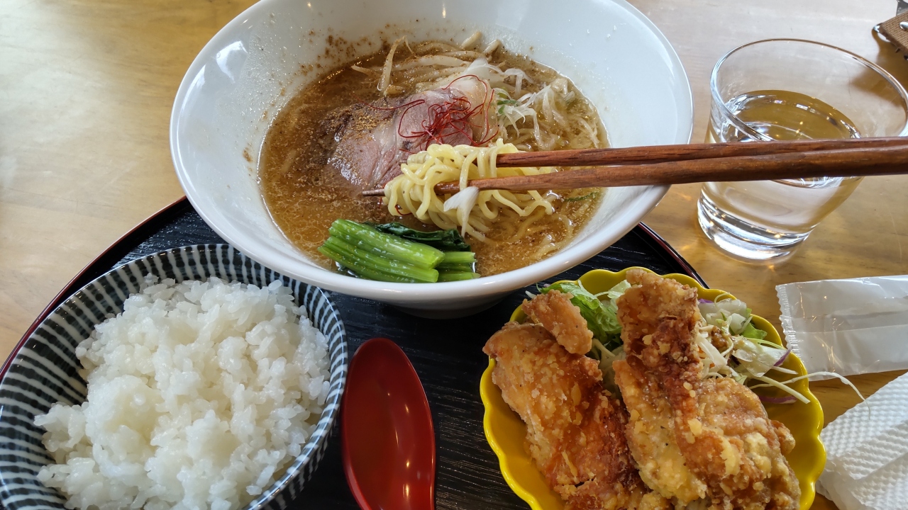 猪肉のチャーシューがのったラーメンは専門店も顔負けのレベルの高さ。唐揚げも旨い。