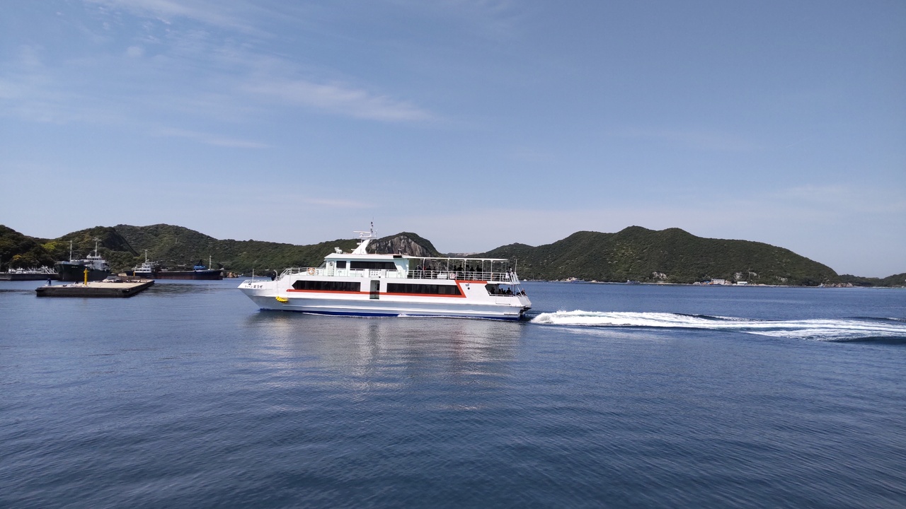 ただし欠点が2つ。大原航路より外洋を通るために船が揺れます。特に行きの揺れが激しく、少なくとも2人が吐いていました。酔い止め薬は飲んだ方がいいですね。それと、やはり大原航路に比べても欠航率が高いです。その場合は大原港から連絡バスが出ているのですが、時間のロスは否めませんね。