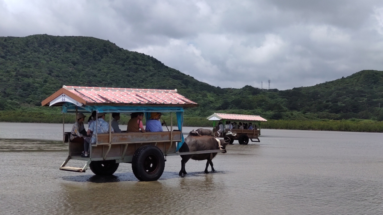 当日も団体ツアー観光客を乗せた水牛車が頻繁に行き来しています。