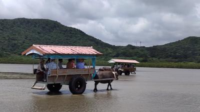 ただし水牛車の邪魔にならないように電柱に沿って歩きます。島全体が熱帯植物園になっており、歩いて渡ると入場料700円です。- 旅行時期