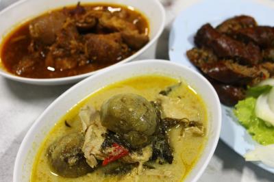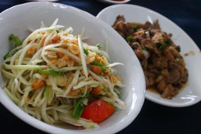 ターペー門を出て水路の外側の道を南へロイクロー通りに向かって歩くと5分以内に到着します。入口付近におかずを陳列しているコーナーがあって、気に入ったものを指差すと後で持ってきてくれます。カレーが何種類もありました。陳列している以外にも多くのメニューがあるようです。緑と赤のカレー2種とライス、チェンマイソーセージとビールをたのんで265バーツ(950円)でした。どれも大変美味しく大満足でした。