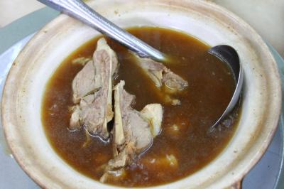 マレーシア名物のバクテー(肉骨茶)で有名な店です。ブキビンタン駅からインビ方面に歩いて10分ほどです。店はオープンエアで広く開放感があり、入りやすいです。昼もだいぶすぎてから行ったのですがほぼ満席でした。写真入りのメニューがあり選びやすいです。バクテーも何種類かありました。オリジナルバクテーはぐつぐつ茹った土鍋にスペアリブがゴロゴロ入っています。ニンニクと唐辛子の刻んだやつが一緒に付いてくるので、適当に混ぜて食べます。できれば白飯を一緒にたのむと良いでしょう。白飯にバクテーをぶっかけても美味しいです。バクテーの味は中華風の醤油味で、かすかに漢方の香りがします。これで18リンギット(500円)ですから十分リーズナブルだと思います。