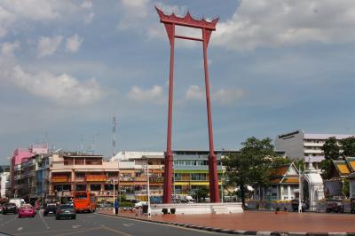 バムルンムアン通りの南側に面した高さ20m以上もある巨大なブランコのような鳥居です。昔は実際にこの鳥居から人間が乗ったゴンドラをぶら下げて激しく揺するという危険な祭りをやっていたようです。背が高く奇妙な形なので遠くからも目立ちます。間近で見るとかなりの迫力です。この鳥居を西へ5分ほど行くと歴史的建物が保存されているプレーンプートン通り、さらに5、6分行くと王宮に突き当たるので、旧市街への目印になります。バムルンムアン通りは側道の幅が狭く交通量も多いので気を付けて歩いてください。