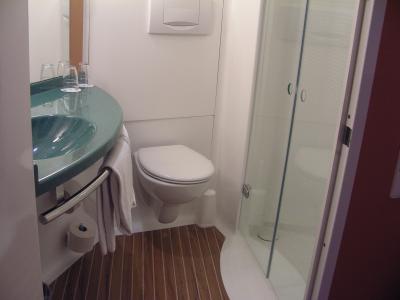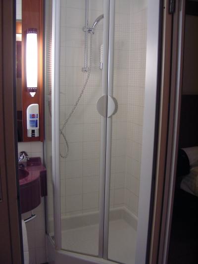 - バスルームというより、シャワーブースが室内にある感じだが、部屋が湿気たりする感じはない