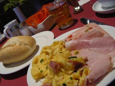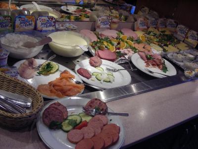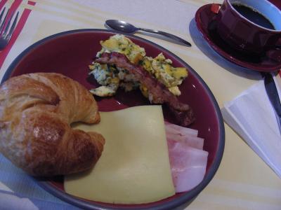朝食は、種類は少ないものの、定番メニューは一通りそろっています。