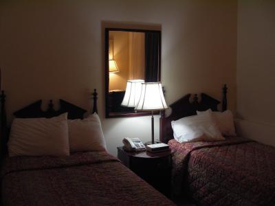 ベッドから窓の外の景色が見えるのが良かった。ベッドスプレッドのセンスは少々田舎っぽい