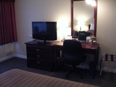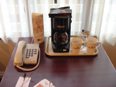 お部屋はクイーンルーム(ベッドの大きさはダブル程度に見えるが)の予約だった所為か狭さは感じませんでしたが、デスク以外にテーブルなどのシーティングエリアはありませんでした。
