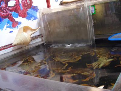 他に、カニや牡蠣、あさりの盛り合わせのプレートや、単品、お惣菜的なメニューもあり、持ち帰りもできます。市場なので、むしろ持ち帰り(蒸してもらってもって帰るなどもできるらしい)のほうがメインなのかもしれません。