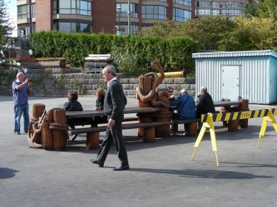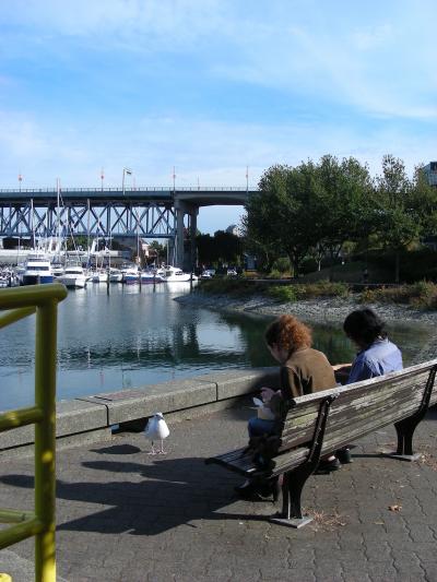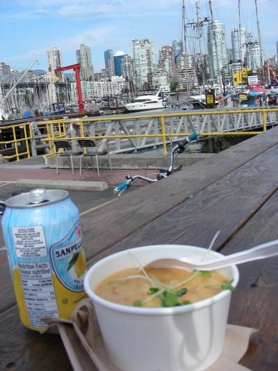 高級そうなマンションを背景に船が並ぶ、バンクーバーらしい、港(湾?)を眺めながら、気持ちよくお食事ができました。