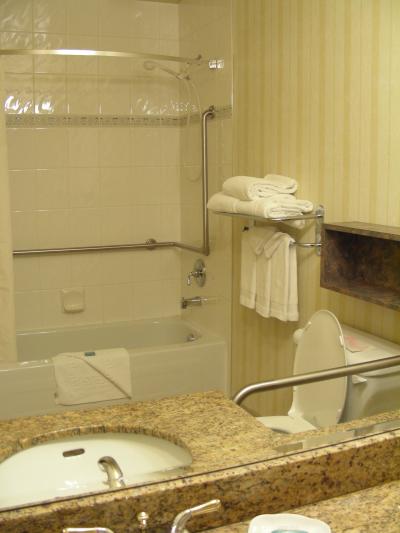 どうやらバリアフリールームの様で、とても広いバスルームでした。