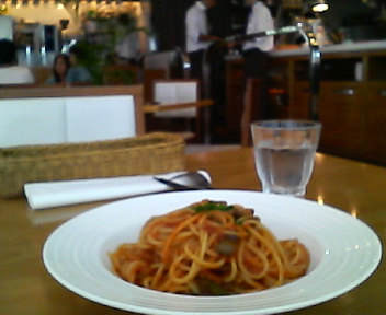 パスタはトマトとナスのボンゴレ!?なんかいっぱい入れといたって感じでしょうか?口の開かないアサリがいくつかあったのが不満です。