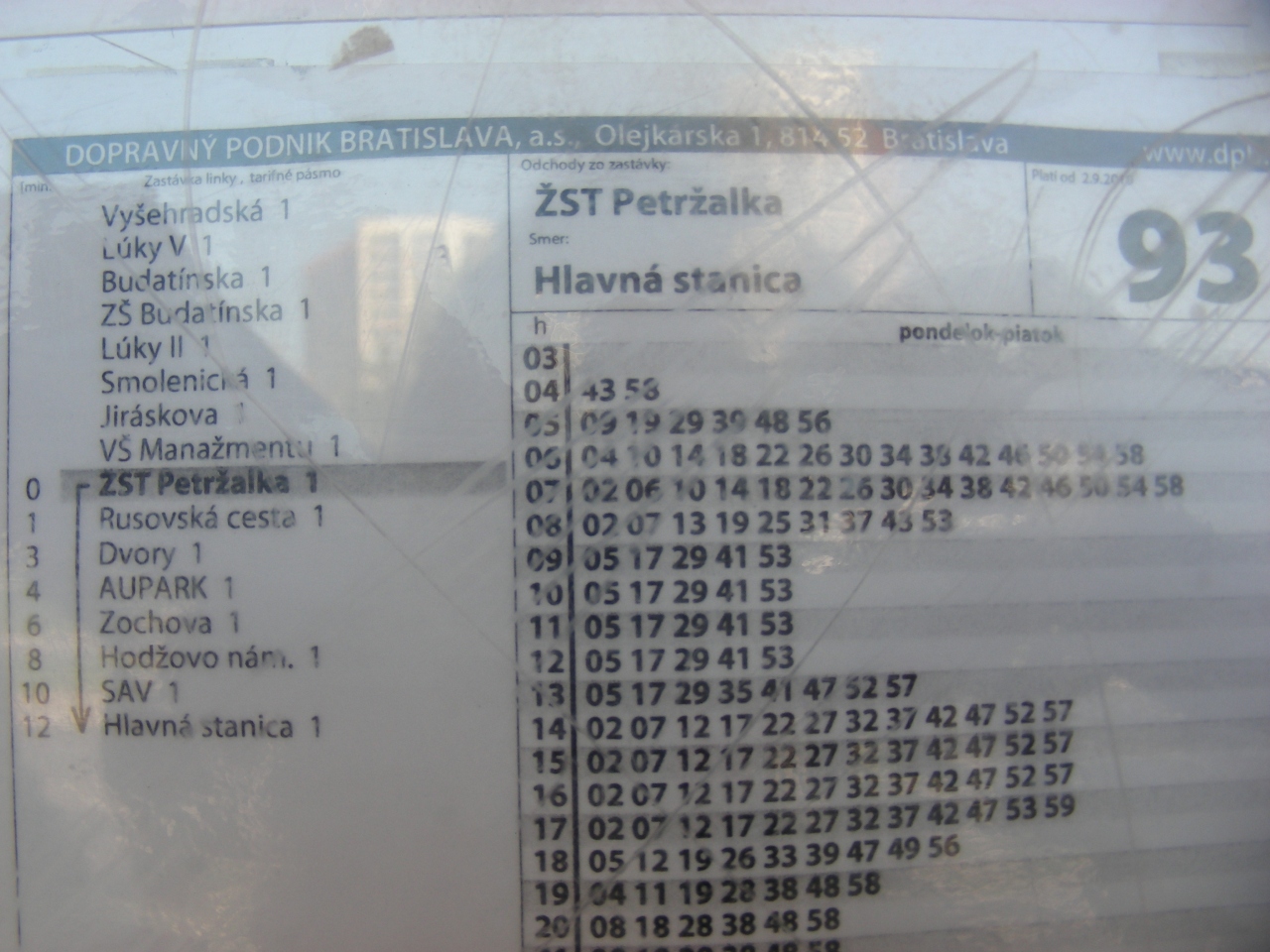 歩き方には、ペトルジャルカと中央駅を結ぶのは82番のバスとありますが、2010年10月に訪れた際は、写真の93番のバスを利用しました。
