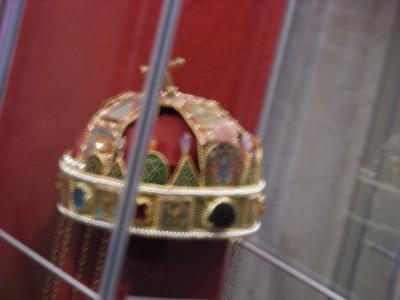 写真の王冠は、上にのっている十字架が傾いている事から、ハンガリーの王冠のレプリカと思われます。