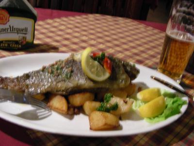 ガイドブックにお勧め料理として載っていた、ウハーとデミヤーノフ風スズキを頂きました。