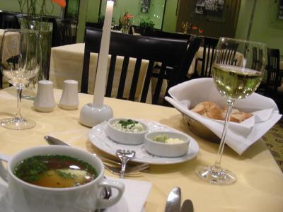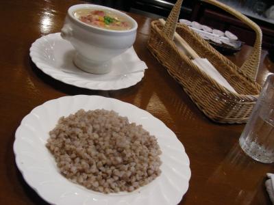 そして写真のソバの実のリゾットと、名前は忘れましたがメインの、ベラルーシのスープです。