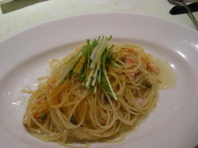カラスミとカニのパスタもとても美味しかったです。お恥ずかしながら、カラスミが何物なのか知らず(^-^;)このお皿の中のどれがカラスミなのかわかりませんが旨味たっぷりのパスタでした。カニもゴロゴロ入ってました。1000円は安い!!