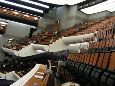ホールの形は、東京芸術劇場に似ているけれど、客席が寸詰まり、奥行きが浅いのでひな壇が急で、上の階ならどの席もしっかり音が来ると思います。
