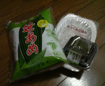 写真は笹飴(夏目漱石の坊ちゃんで、きよが越後の土産に笹雨が食べたい、と言ったアレです♪)と、和菓子と、海外旅行用に買った、チンするご飯。