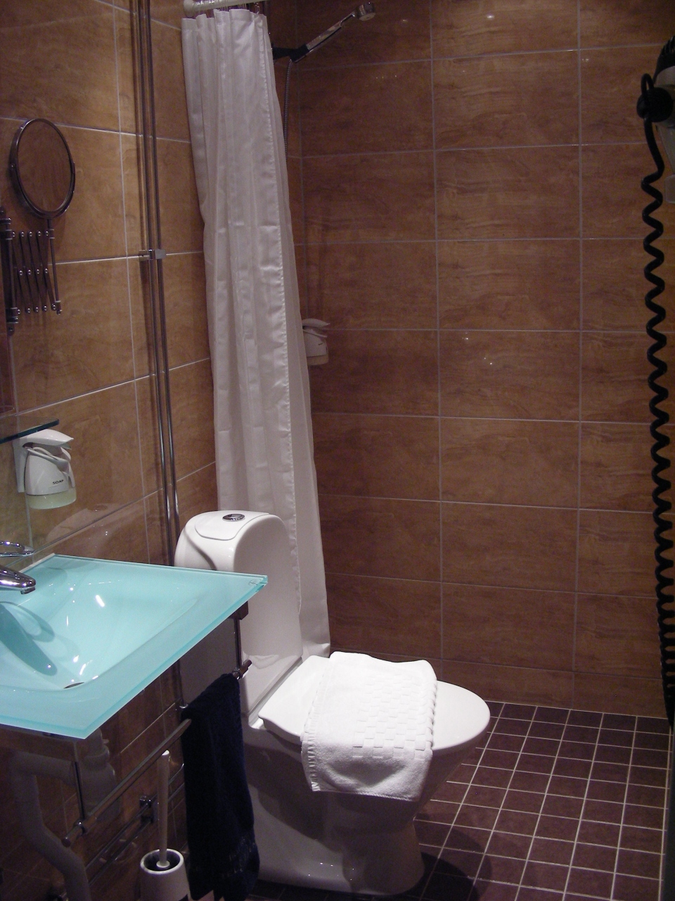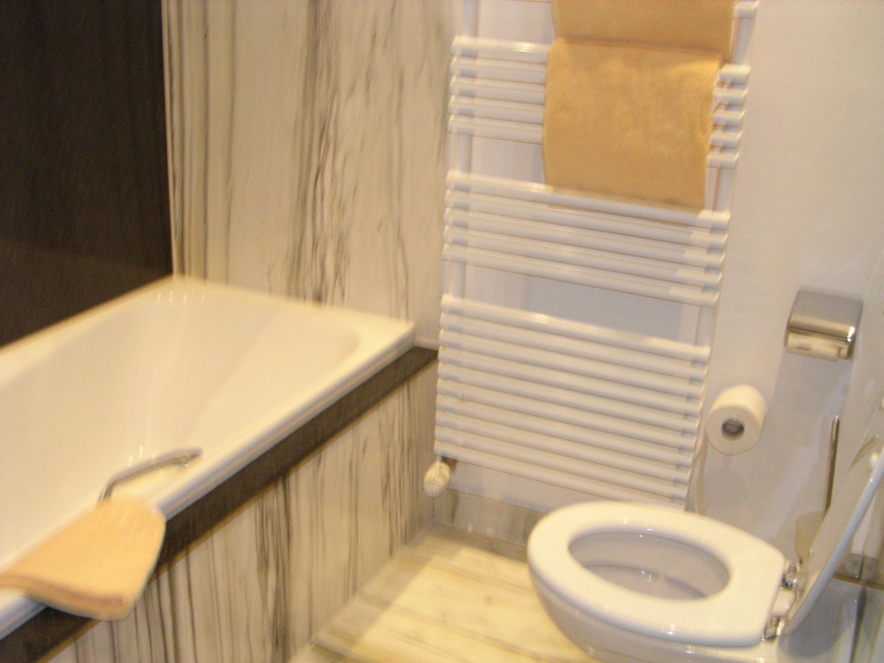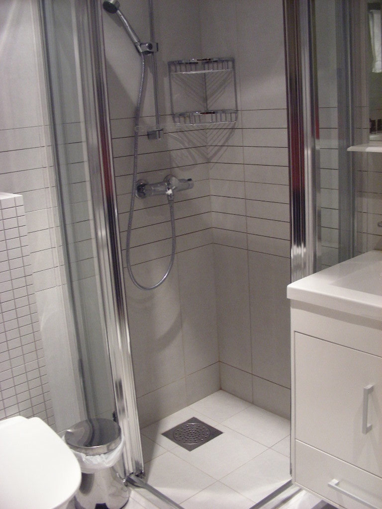 バスルームの水はけが非常に悪く、且つ北欧に良く有る「シャワーブースに仕切なし」タイプなので、シャワーを浴びている間にいつの間にか、シャワーカーテンの向こうまで水浸しになっちゃって…