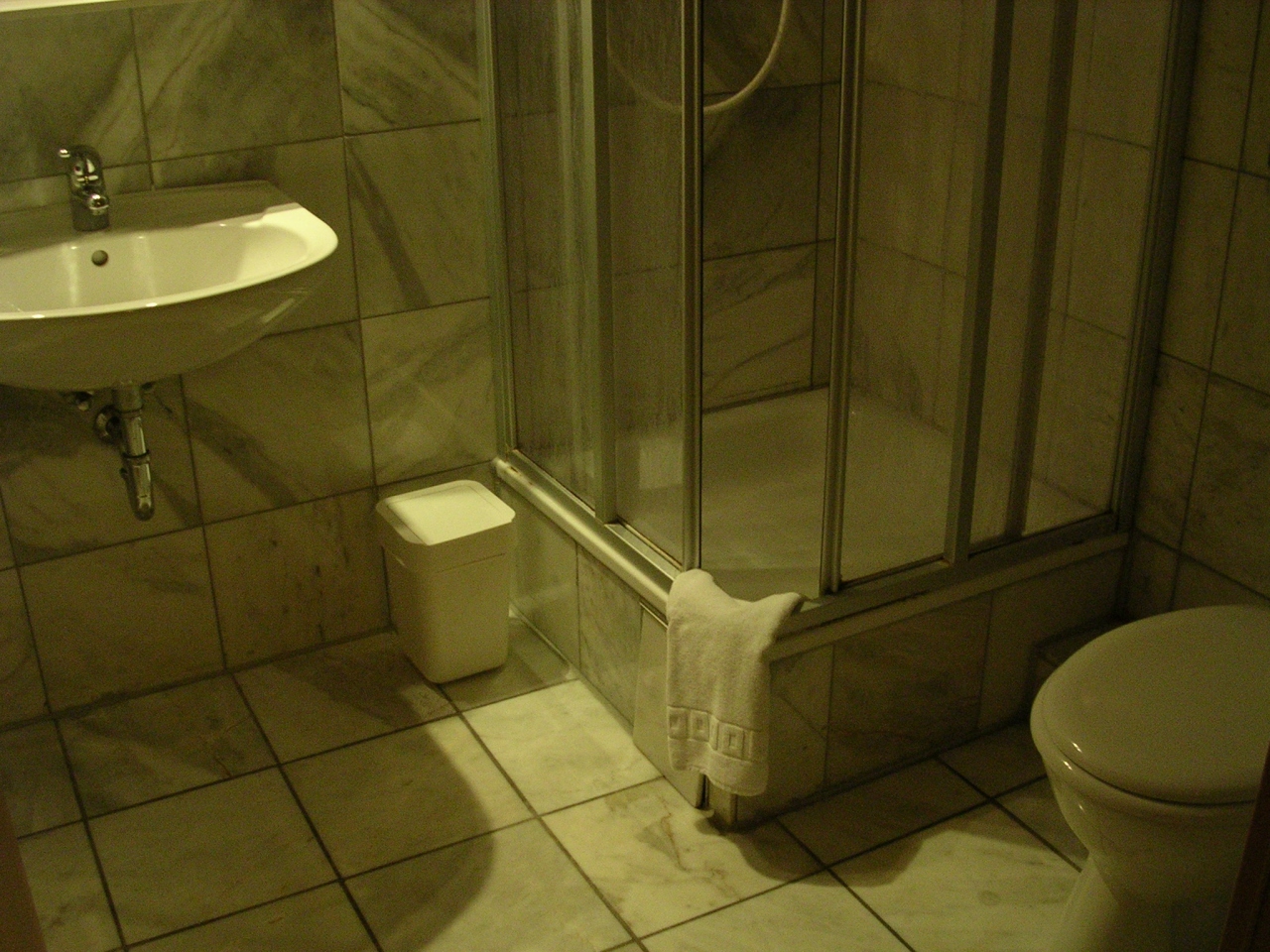 浴室のタイルが緑色で、実際は清潔でも、今ひとつ清潔に見えませんでした。