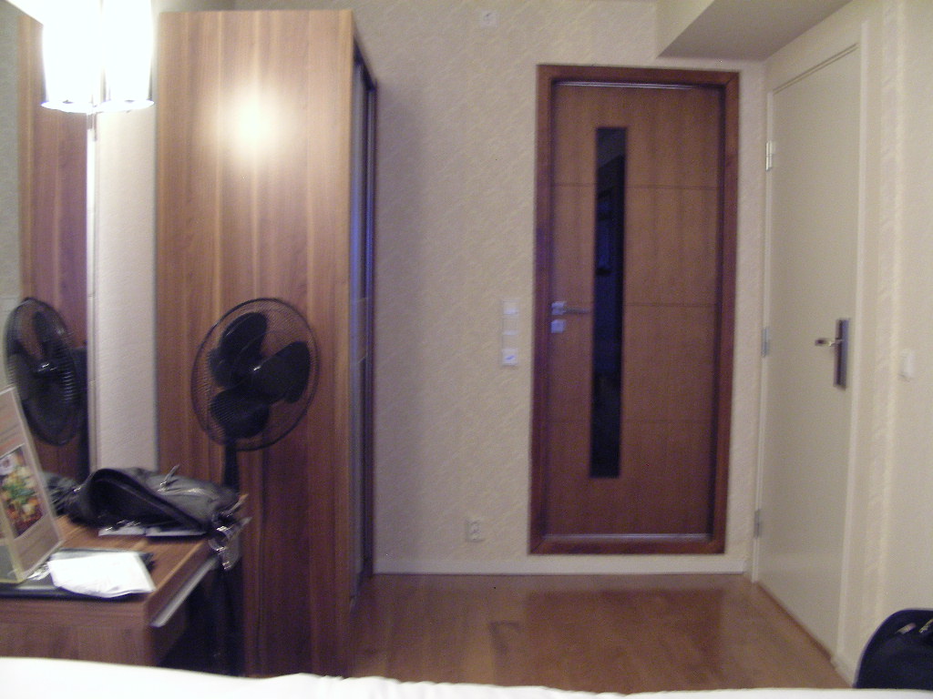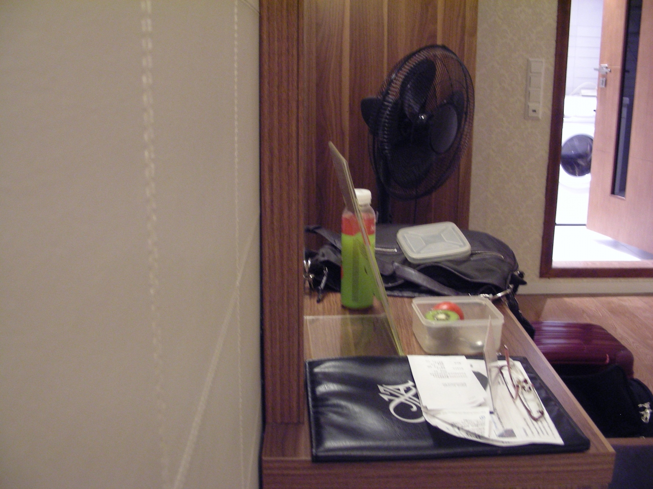 換気扇がスイッチを入れてもまわらず(音がしない)…これを客室バイザーみたいな人(ヘッドセットとマイクを付けて客室をまわっている)を見つけて言うと「コレで良いんだ、換気してる」との事。「ふうん」と思ったのですが、部屋は蒸れるし、扇風機も用意されている辺り、ビミョーでした。