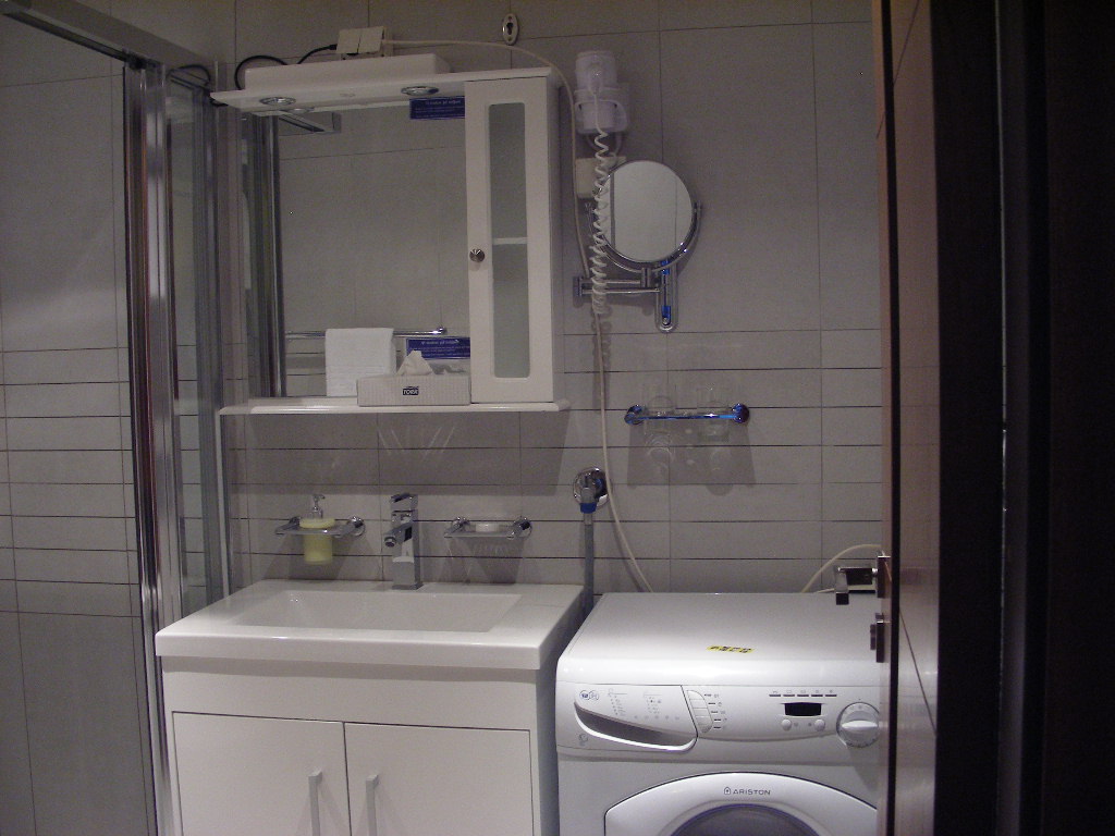 私が泊まった客室は普通のホテル風、バスルームに洗濯機が備わっています。