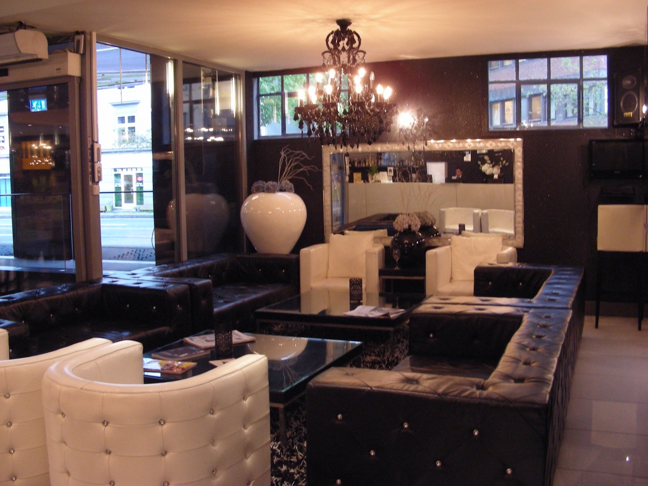 お部屋は狭いながら高級感のある造りで悪くないのですが、窓が中庭に面していて、しかも日本で言う一階。ココが概ね室内。ホテルの造りから、かなり多くのお部屋がこの造りです。