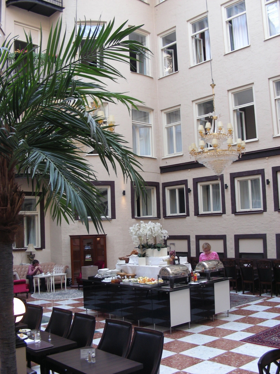 - 私が泊まった安いお部屋の窓は中庭(ほぼ建物の中、朝食会場、レセプション前)で今ひとつ落ち着かなかった