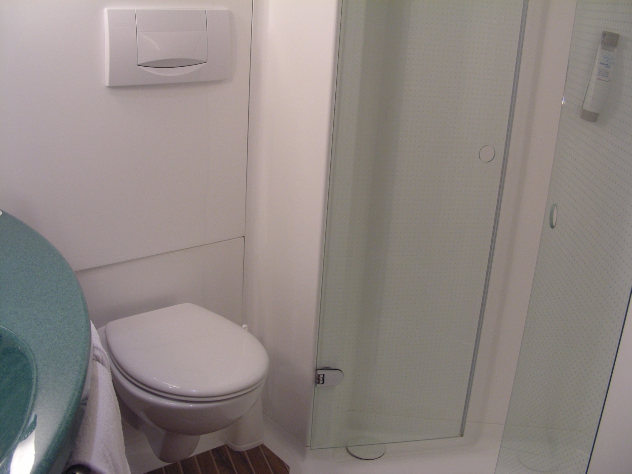 シャワーブースも写真のような形で、カーテンが体にまとわりつきにくい…と思いきや入り口はどうすんの?みたいな…ビミョーです。