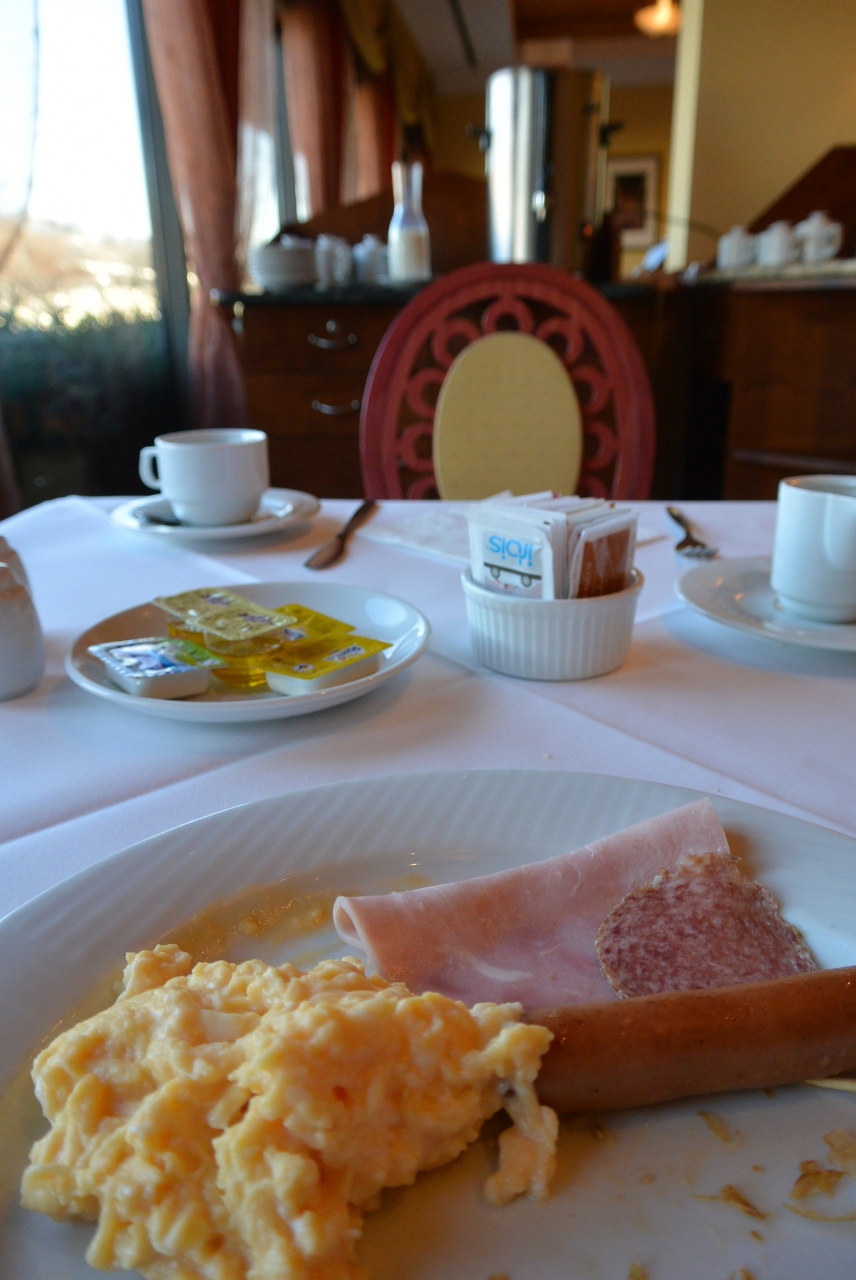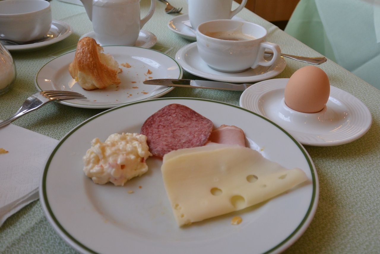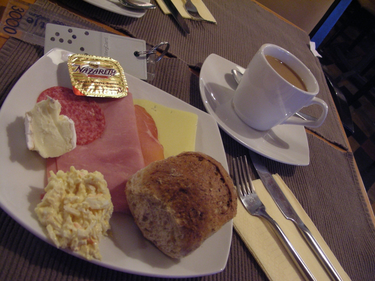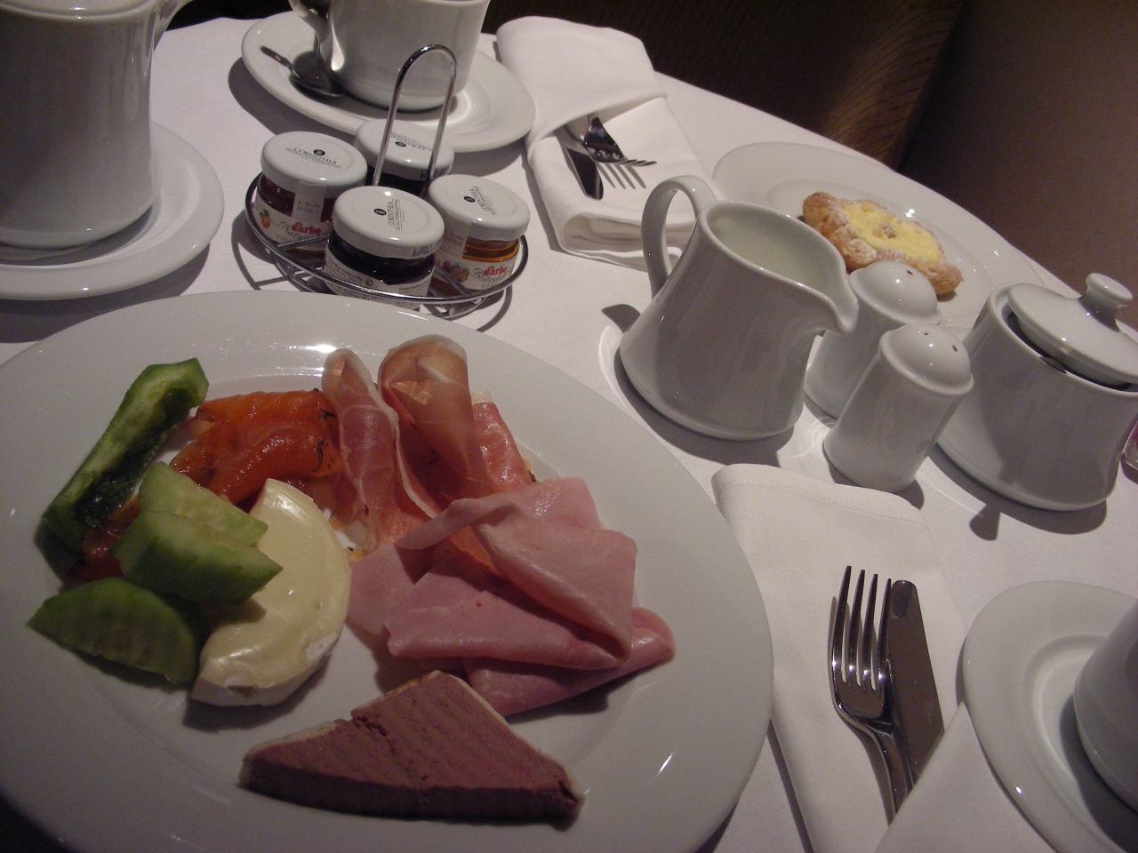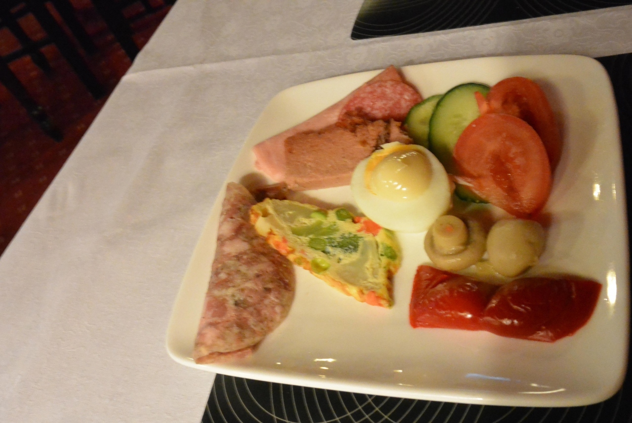 ソーセージや魚のマリネ、フレッシュフルーツもあり、5つ星らしい朝食でした。