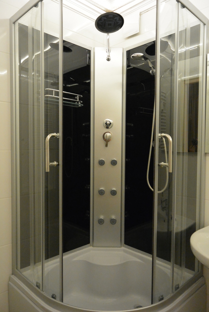 - バスルームというより、シャワーブースが室内にある感じだが、部屋が湿気たりする感じはない