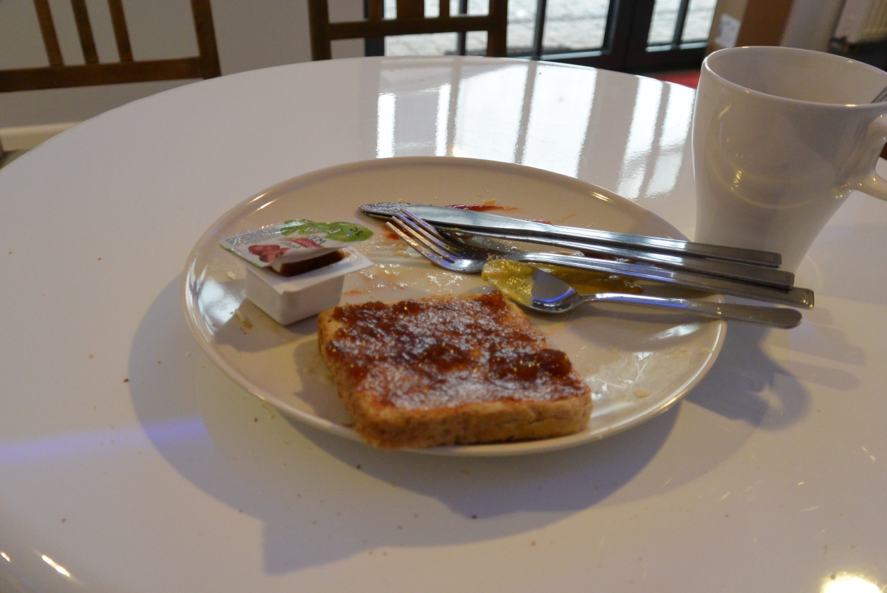 朝食、毎朝ランチパックを用意して、部屋のドアにかけておいてくれるタイプ…朝食ルームがないのだと思います。